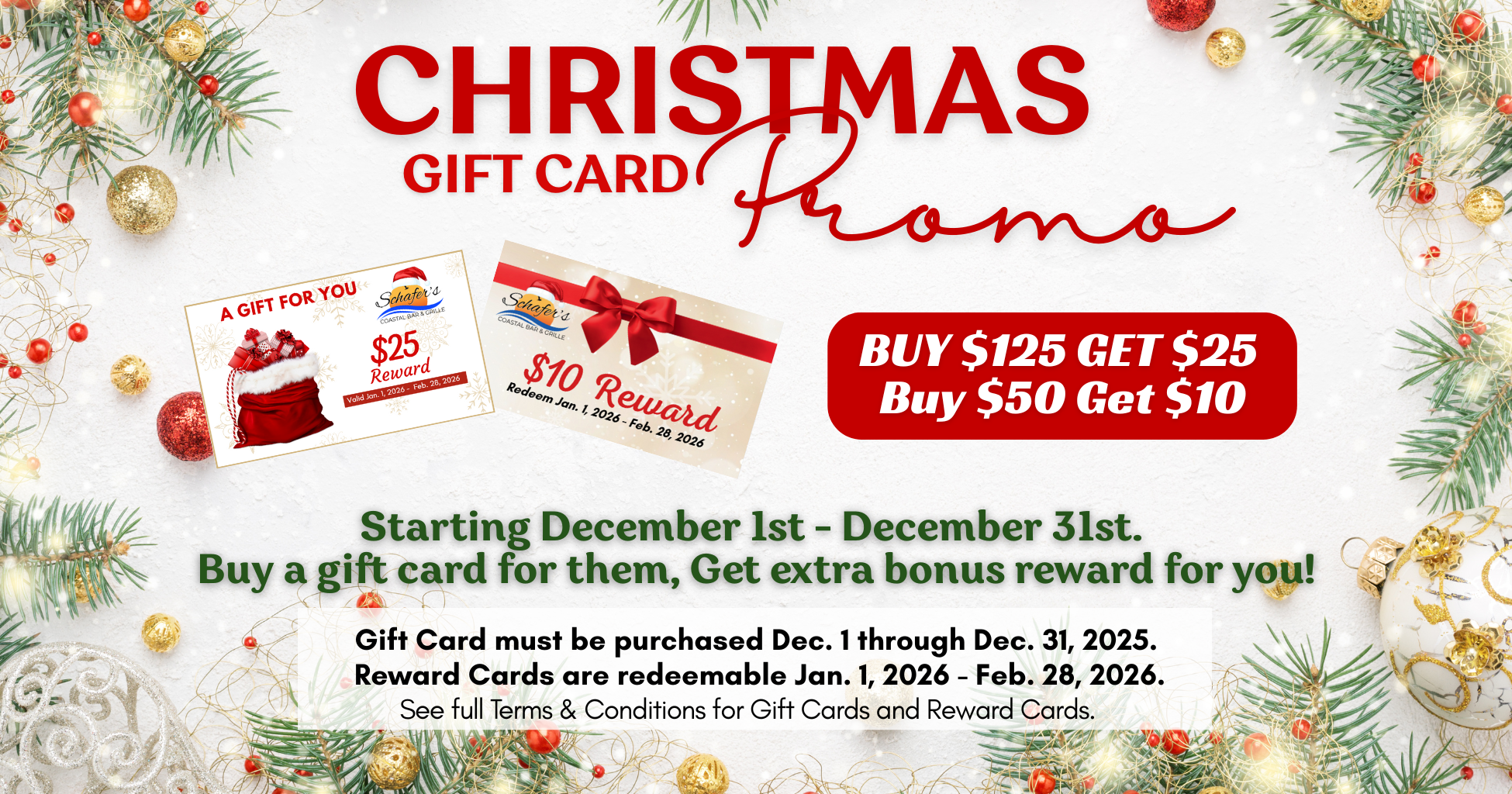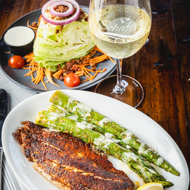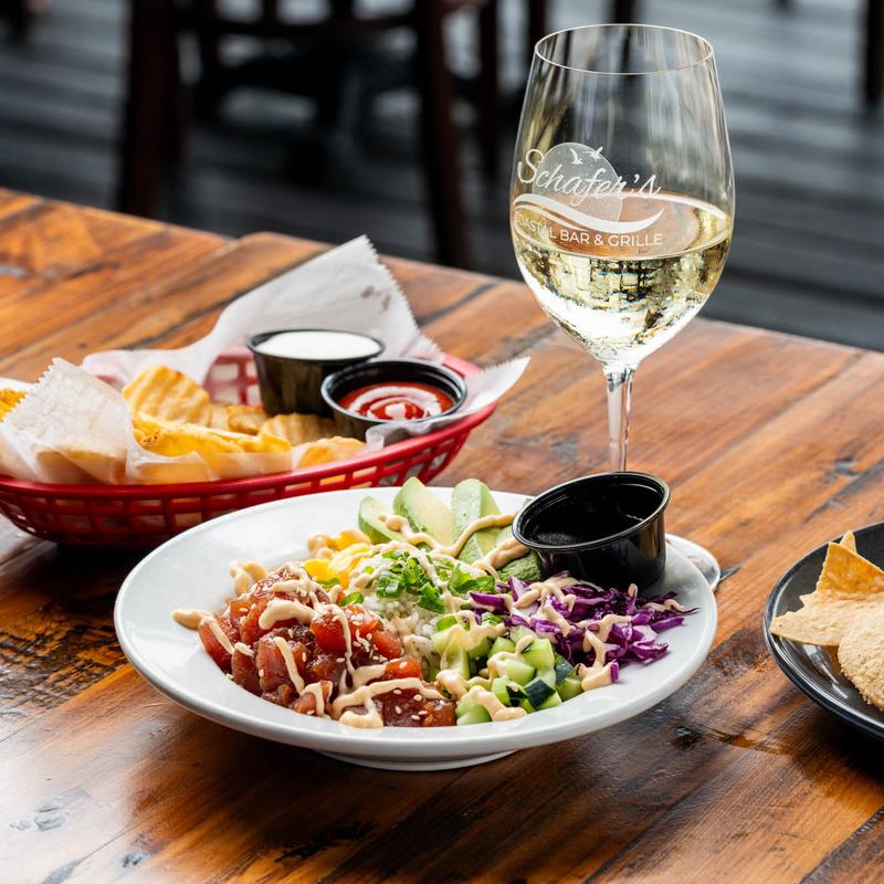 Located on the water, Schafer’s offers an inviting upscale casual atmosphere perfect for everything from date nights to game days. Our menu features fresh seafood and American favorites with a Gulf Coast twist—think mouthwatering steaks, chops, burgers, and coastal-inspired seafood dishes. Pair your meal with one of our signature cocktails or selections from our thoughtfully curated wine list.