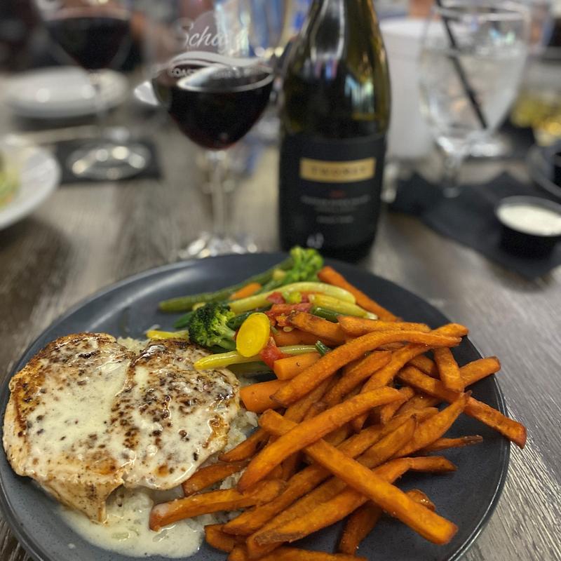 Chef’s sundried tomato pesto, garlic whipped mashed potatoes. (limited availability)